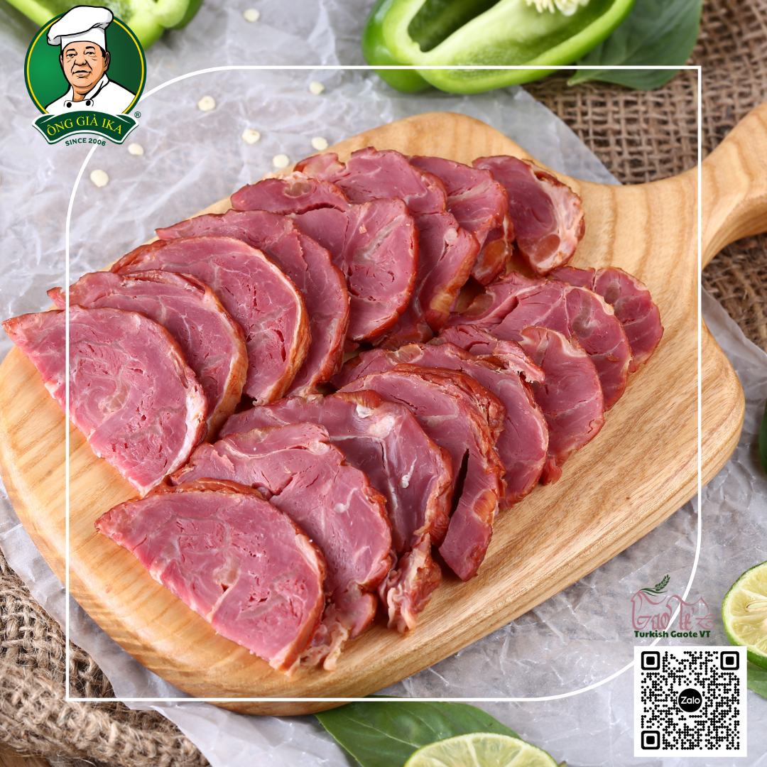 -Thịt bắp bò, gia vị tổng hợp, muối ăn, đường kính... được tẩm ướp và chế biến theo bí quyết gia truyền của dòng họ IKA mang lại hương vị ẩm thực Tiệp Khắc cho món ăn này.