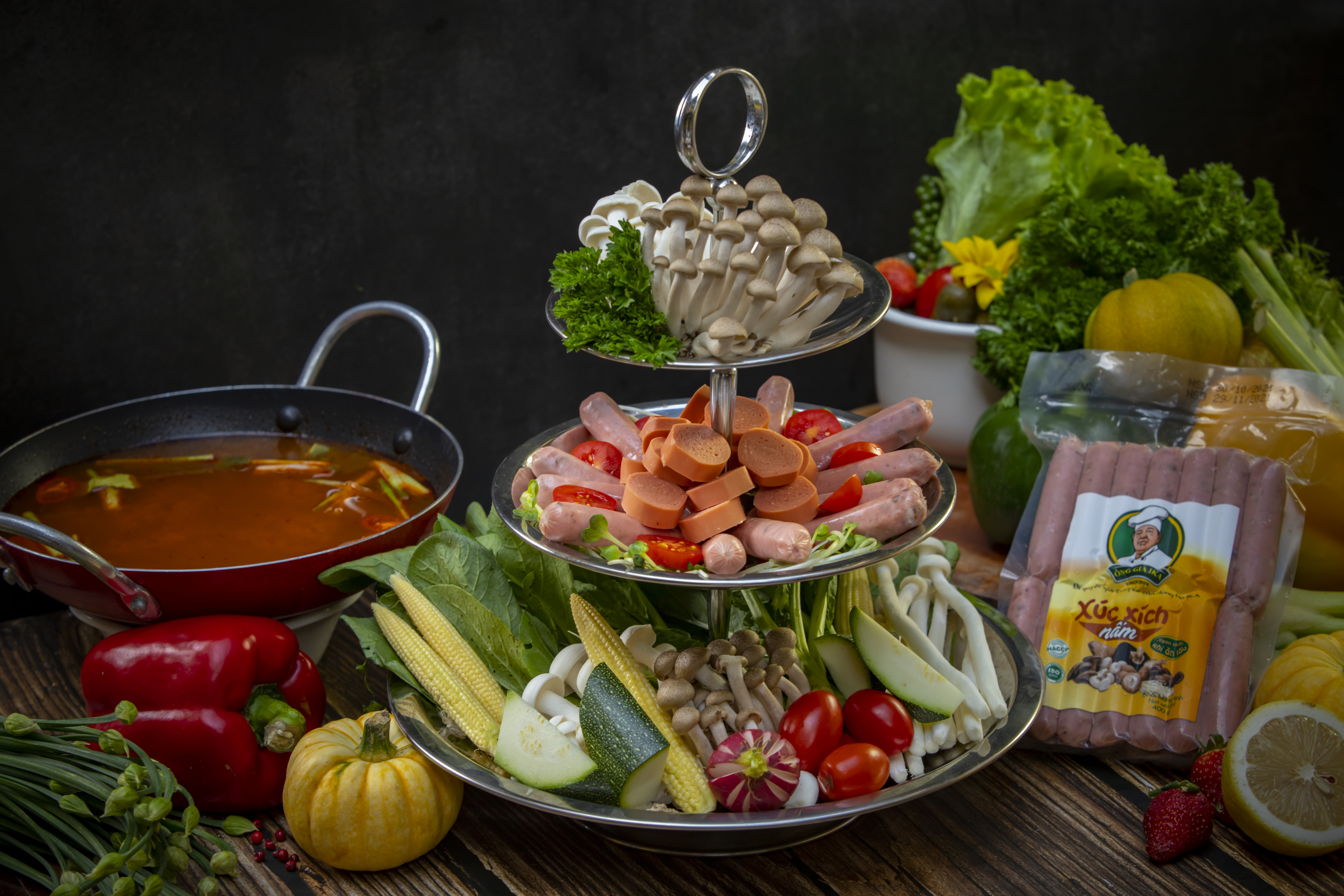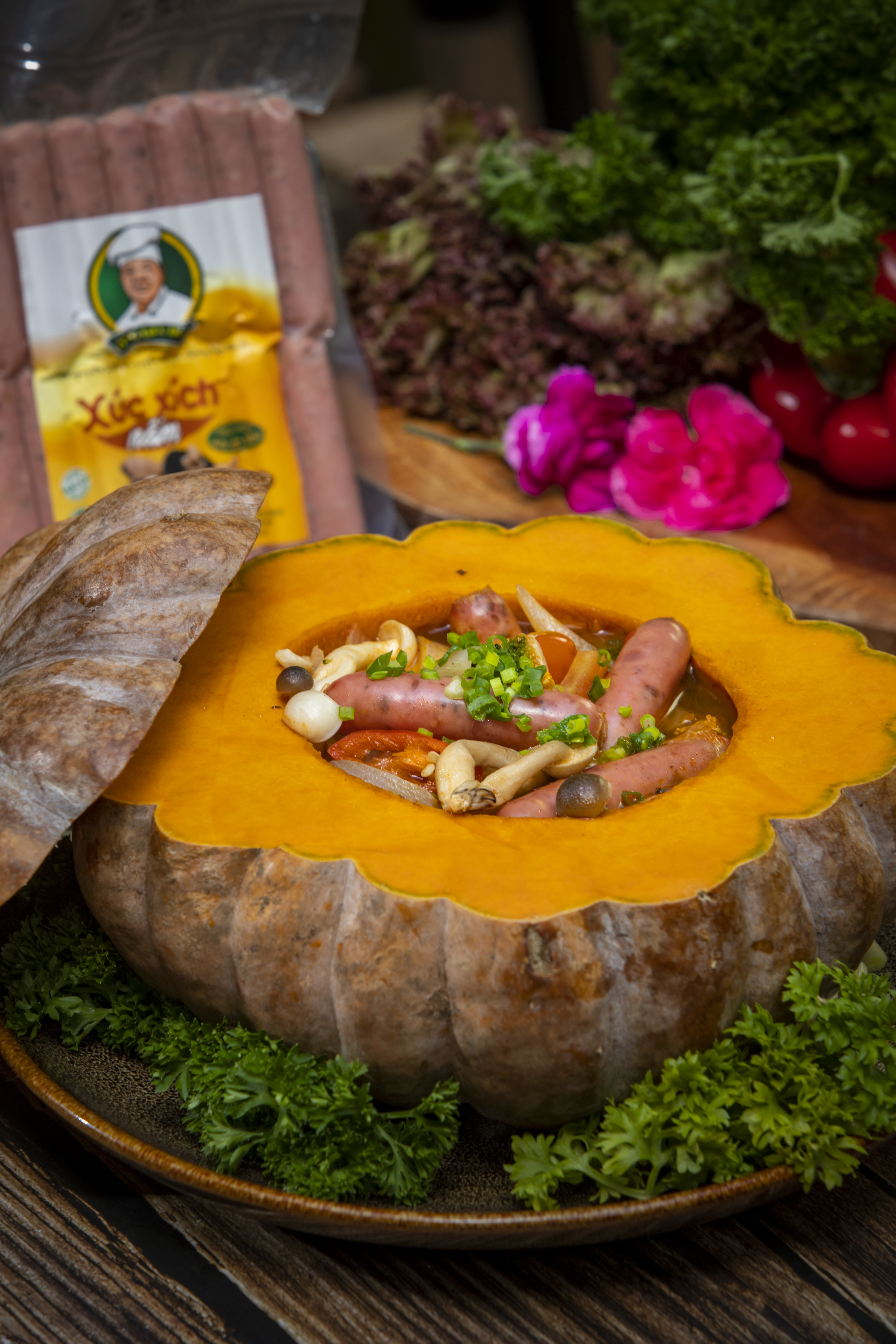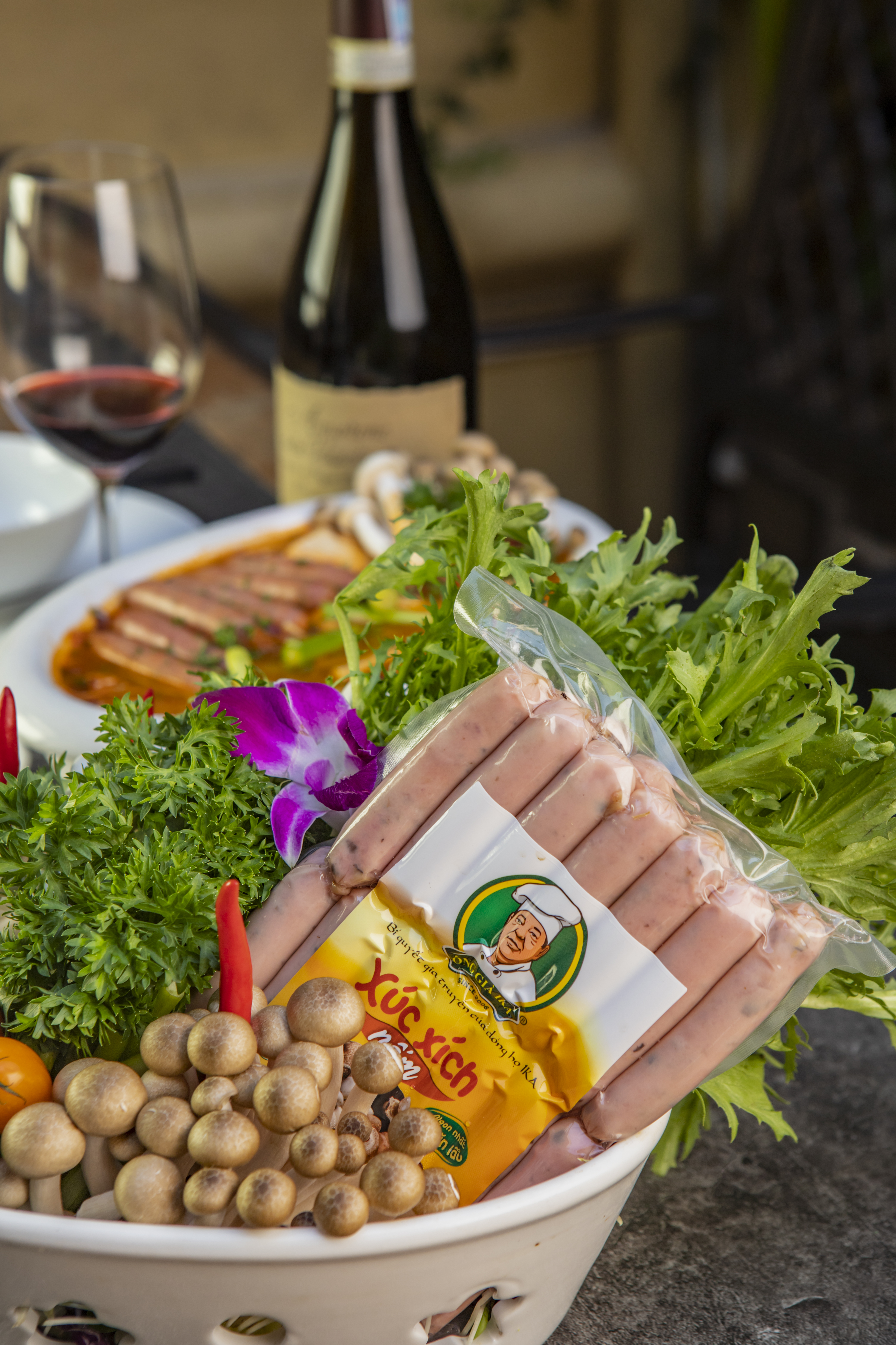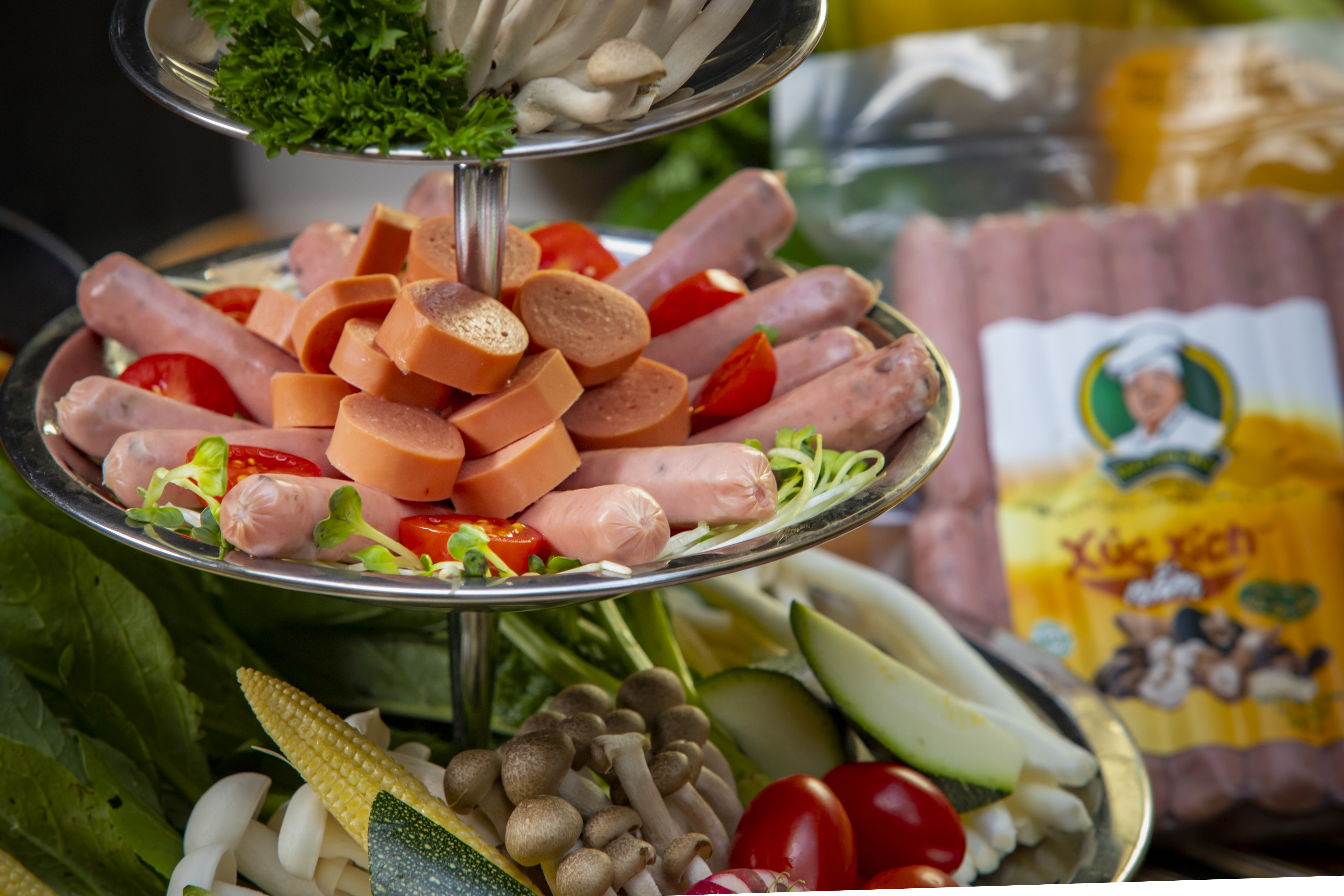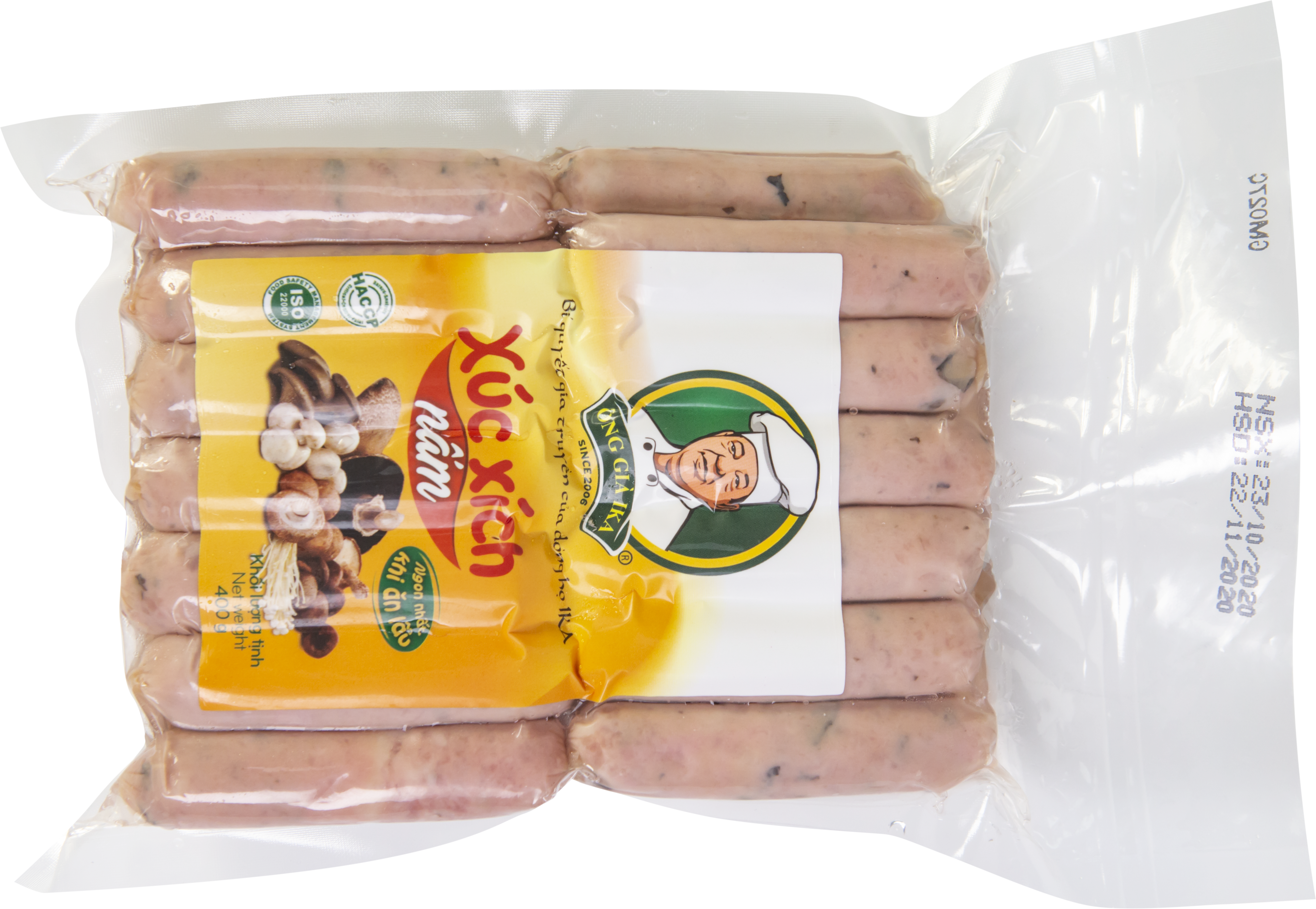 - Xúc xích Nấm được làm từ thịt lợn xay rối kết hợp với nấm hương tạo nên hương vị xúc xích ngọt tự nhiên, dai giòn sần sật.